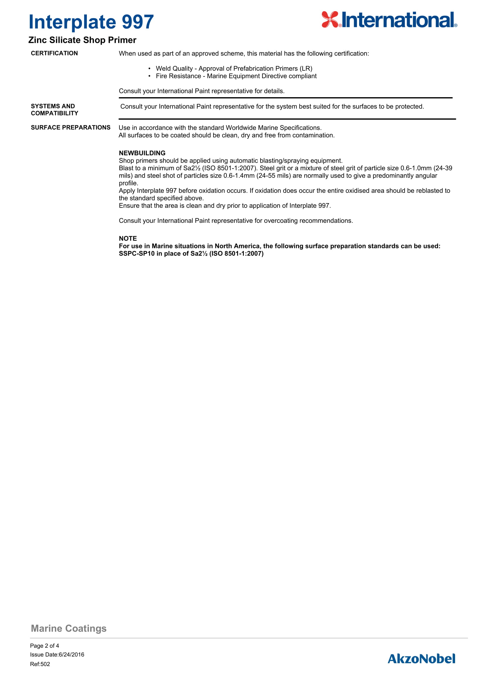 Sơn Epoxy Interplate 997 là một lớp sơn lót hai lớp, chịu nhiệt, kẽm silicate cung cấp khả năng chống ăn mòn tốt (thậm chí sau khi làm nóng đến 1472 ° F), với lượng muối kẽm sản xuất tối thiểu. Thích hợp cho hàn và cắt tốc độ cao với khả năng chống chịu thiệt hại tuyệt vời do hàn, cắt khí và fairing do đó làm giảm thứ cấp yêu cầu chuẩn bị bề mặt so với các sản phẩm silicat kẽm điển hình.